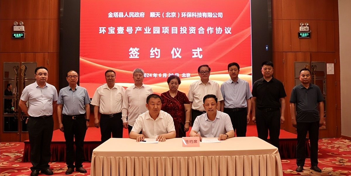 李巖副縣長、甄成君董事長分別代表金塔縣政府和順天(北京)環保科技有限公司簽訂《“環寶壹號產業園項目”...